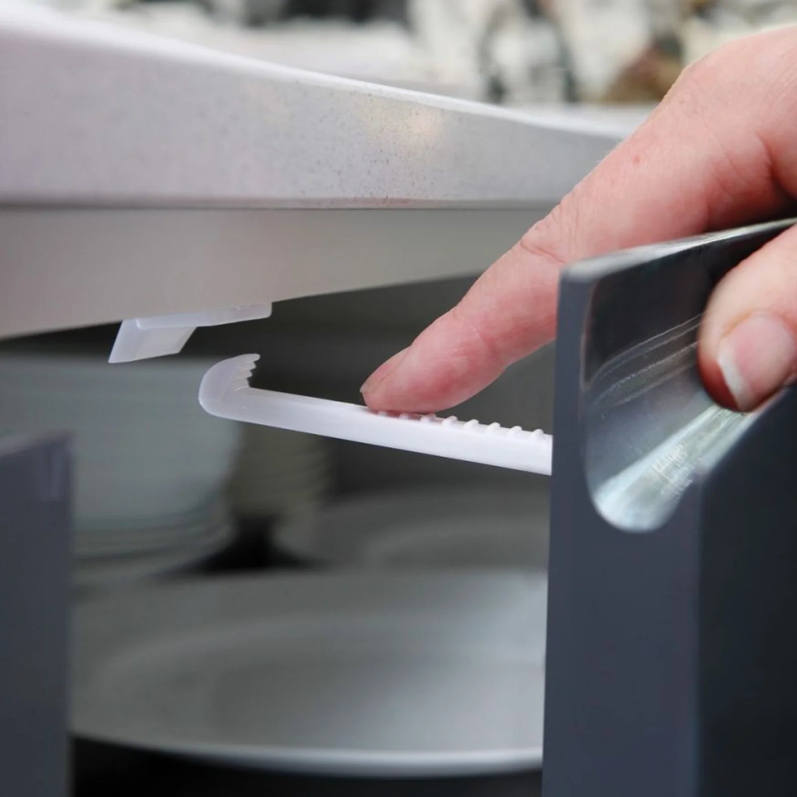 • Locking system: Automatically locks when the cupboard or drawer is closed.
