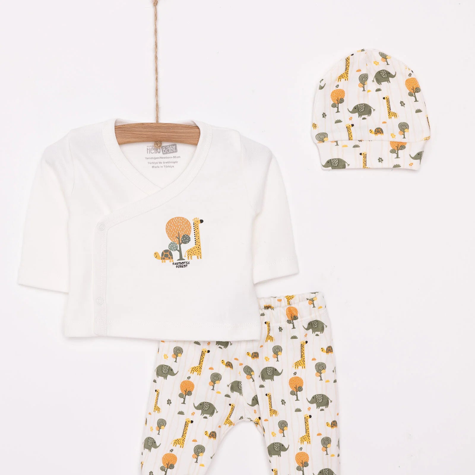HelloBaby Newborn Baby Boy Body-Footed Bottom-Hat - Ecru