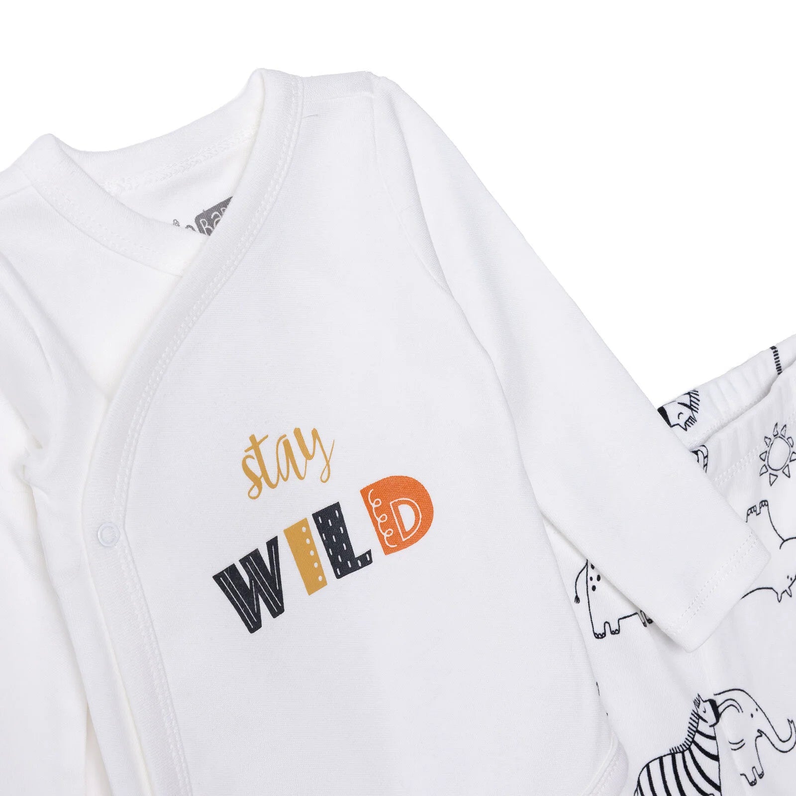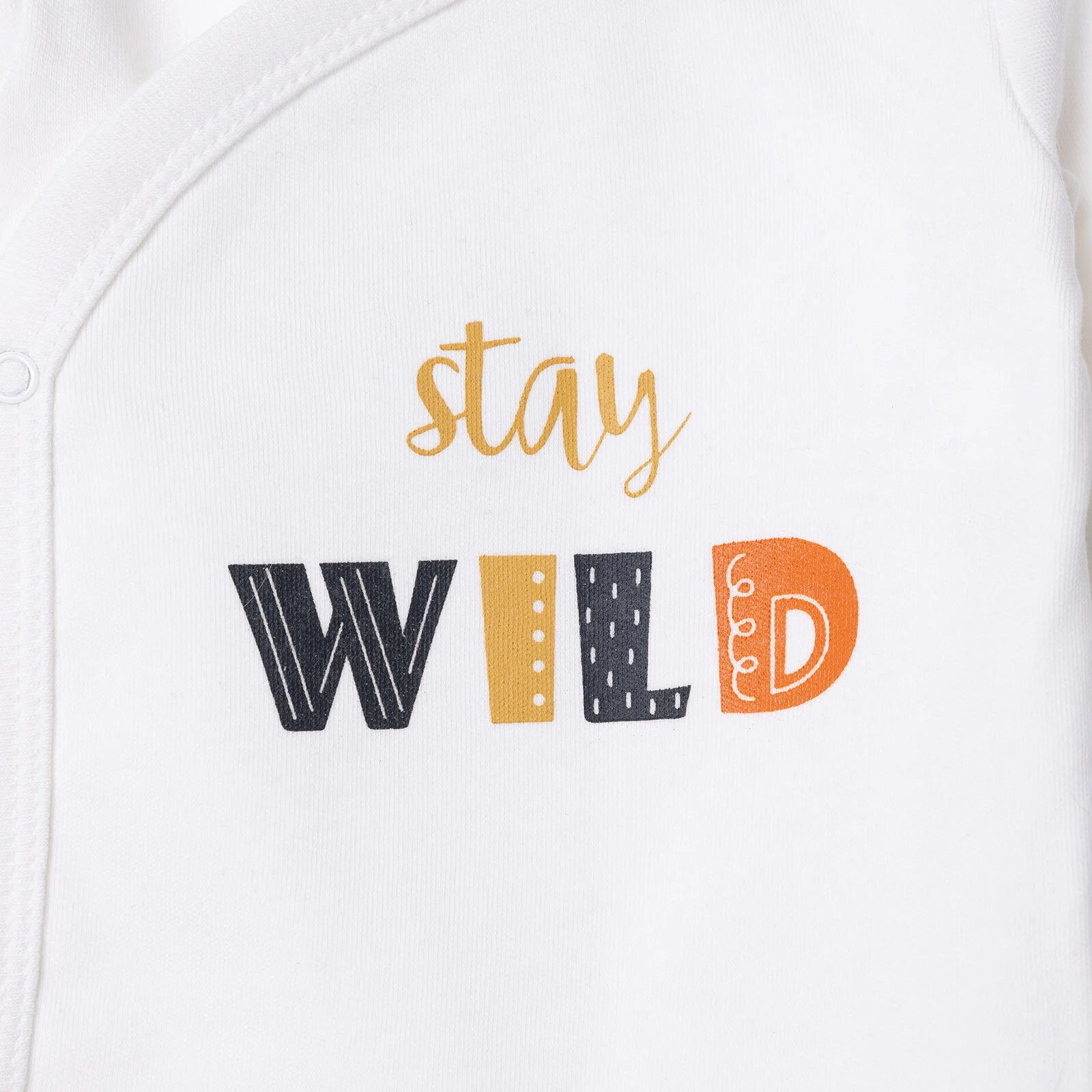 • Pattern: “Stay Wild” text print with animal designs