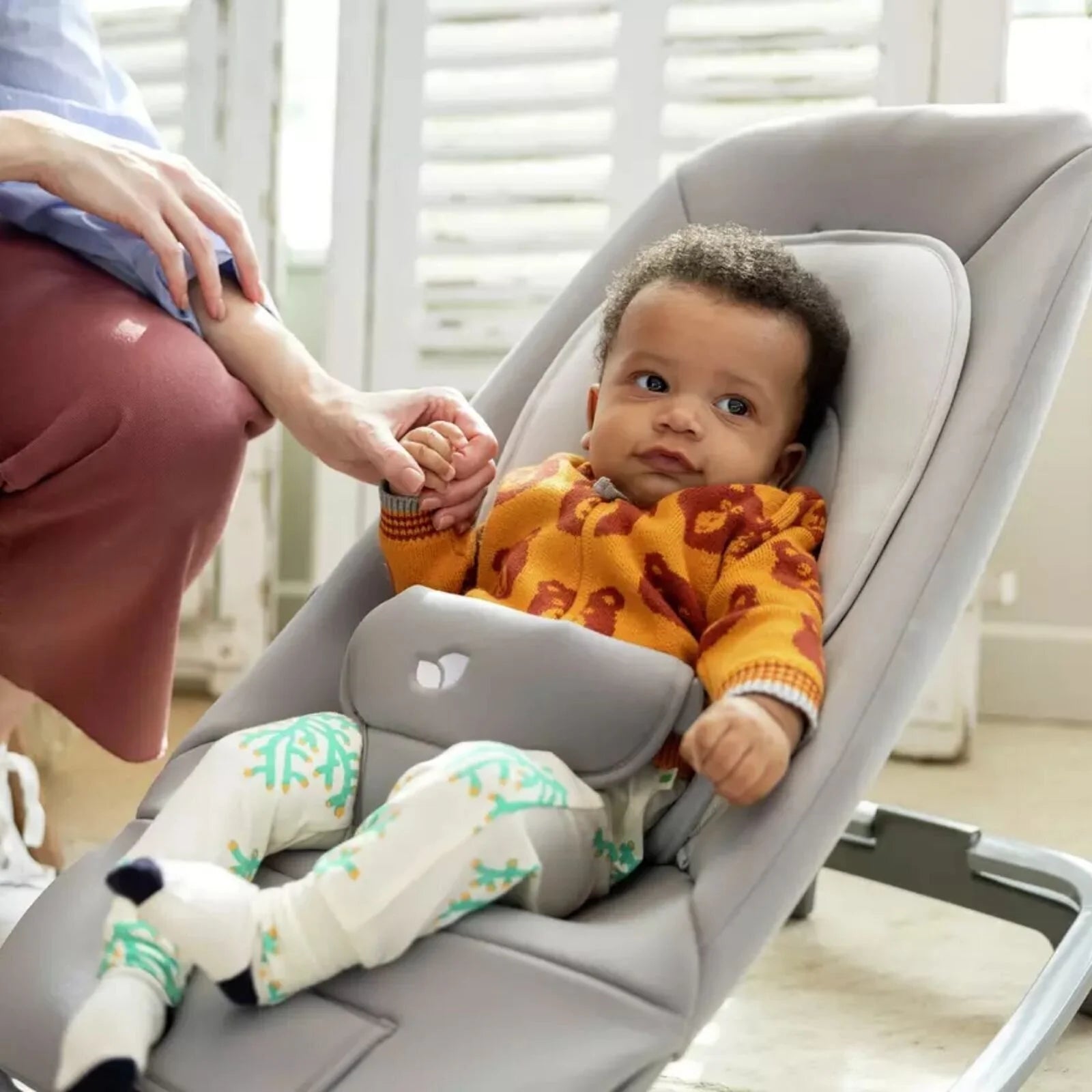 • Seat gently rocks and bounces with a push or when baby moves
