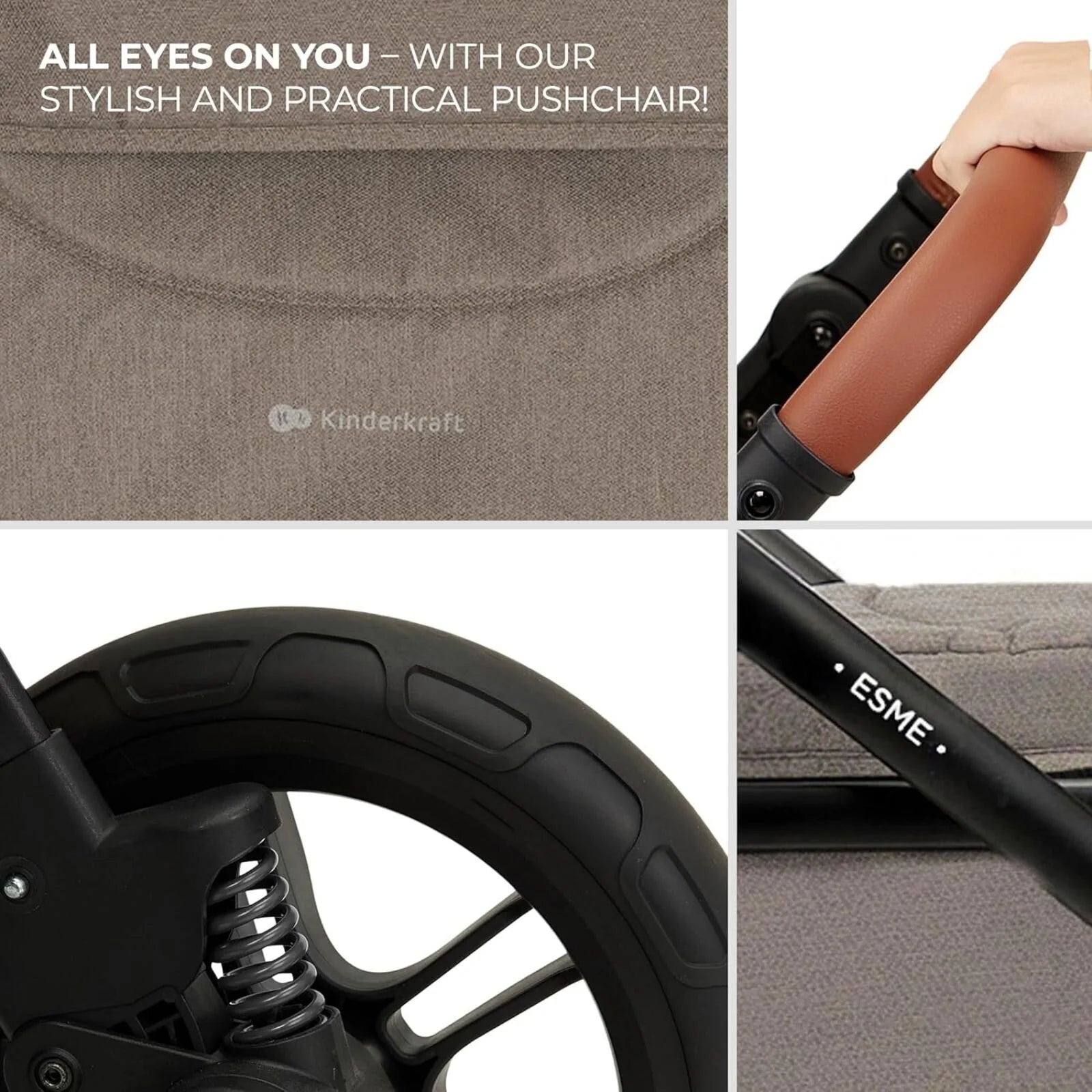 Kinderkraft Esme 3-in-1 Travel System offers exceptional versatility, meeting all your needs from birth up to around four years with a single, smartly designed system. Thanks to its innovative 2-in-1 seat unit, you can switch from carrycot mode to pushchair mode in just a few simple steps, without the need for a separate carrycot, and the seat can be used both parent-facing and forward-facing. The large TPE wheels with full suspension ensure a smooth and comfortable ride on any terrain. Its practical one-hand folding mechanism allows the stroller to collapse compactly even with the seat attached, saving valuable space in your car boot. The included MINK PRO i-Size car seat and adapters create a fully functional TRAVEL SYSTEM for safe and seamless transitions between car and stroller. Esme combines comfort, safety and everyday practicality in one elegant solution.