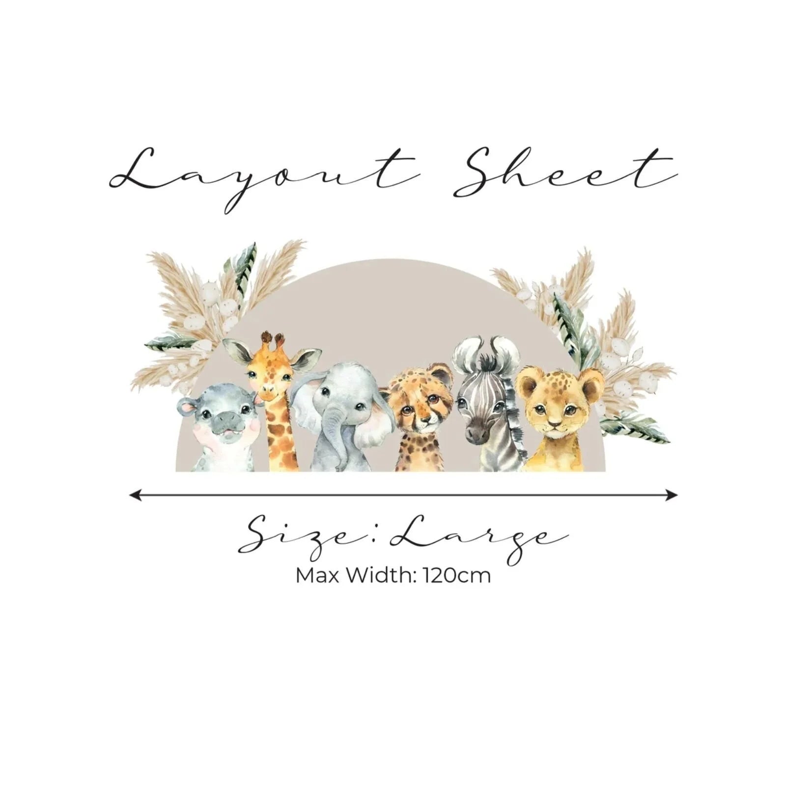 • Features a neutral-toned semi-circle design with adorable safari animal illustrations.