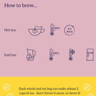 • Each tea bag makes two cups. Strong flavour allows for re-brewing.